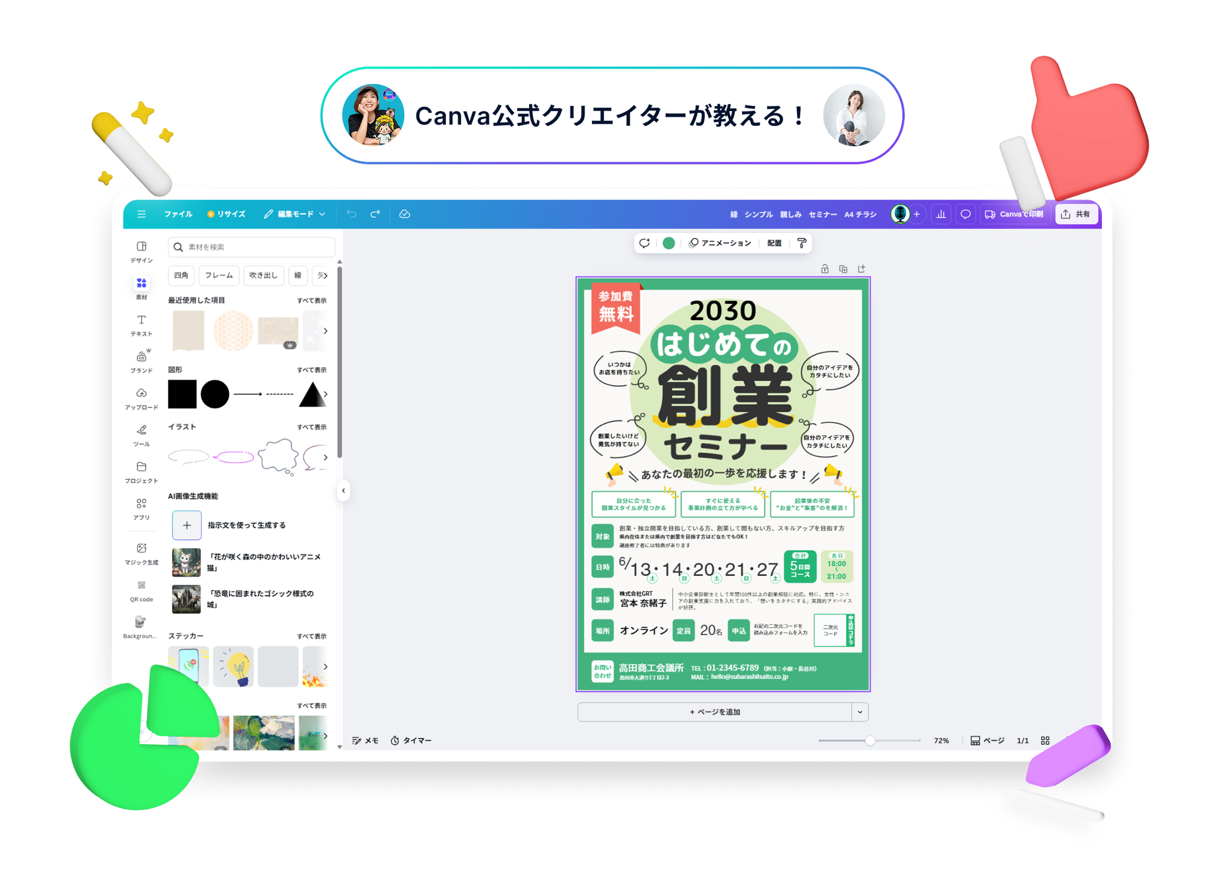研修を担当するのは、Canvaから公式に認定されたクリエイター。